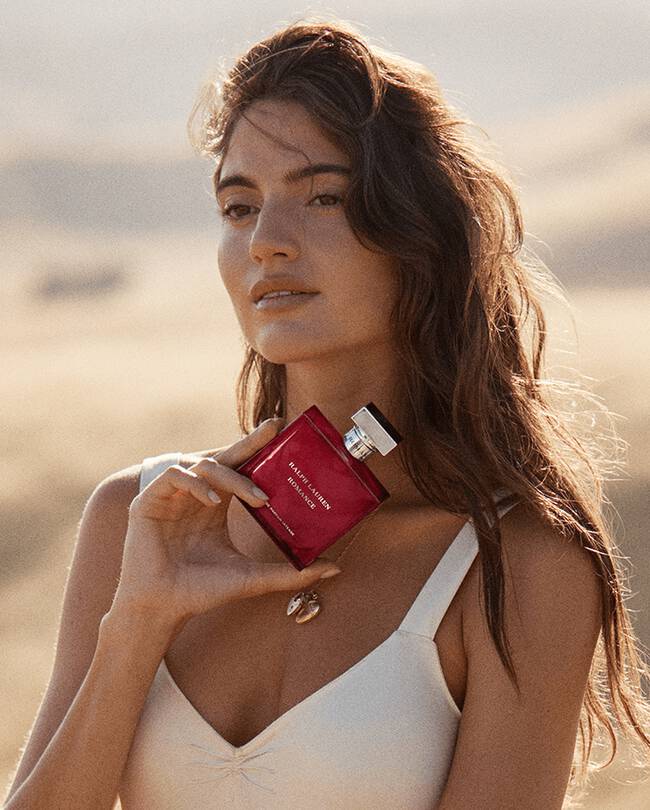 The iconic Romance bottle is redesigned with a new intense, cranberry color statement, inspired by the woman who lives fearlessly and loves passionately, craving the endless pursuit of adventure.
